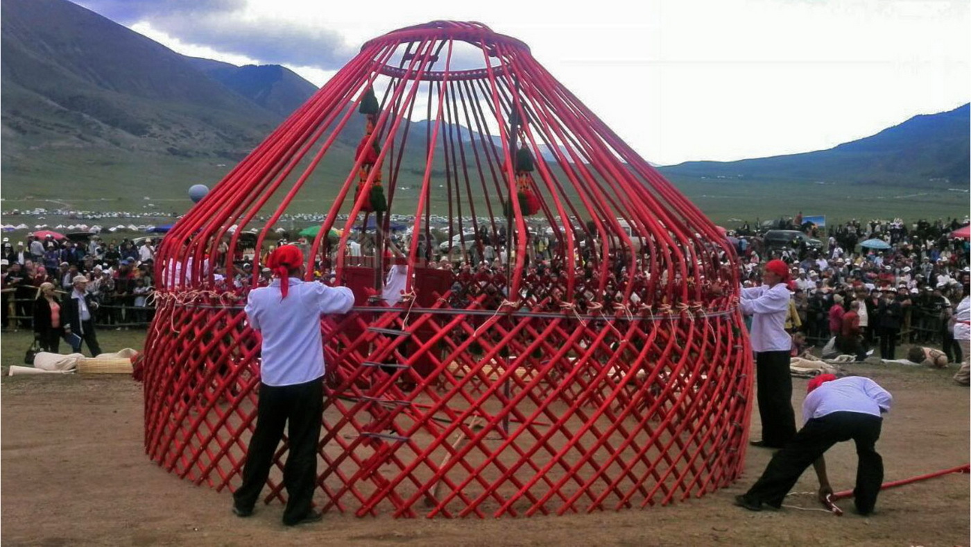 Kyzyl -Tuu village is located on the southern shore of Lake Issyk-Kul , 230 km from Bishkek. The village has a population of about 1,800 people and most of them are engaged in manufacturing the traditional Kyrgyz home – a yurt.